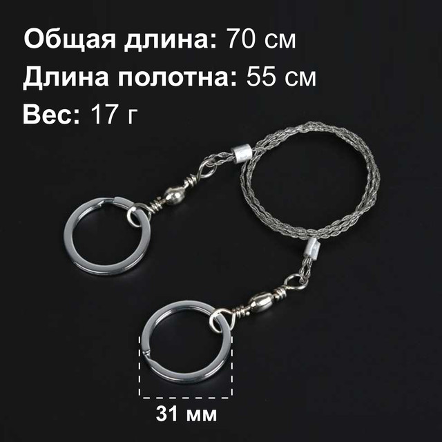 Компактная складная пила с кольцами — незаменимый инструмент для кемпинга, вылазок на природу, выживания и аварийных ситуаций. Четырёхжильный трос из прочной и гибкой стали устойчив к износу, а вращающиеся на 360° кольца обеспечивают удобный захват и маневренность. Можно распилить дерево, пластиковую трубу, кость, лёд, гипс и т.д.
