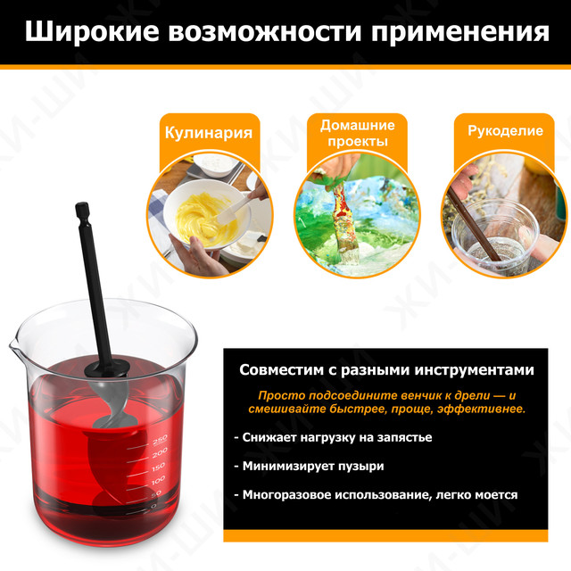 Спиральный миксер обеспечивает эффективное смешивание без пузырей, экономя ваше время и силы. Подходит для работы с эпоксидной смолой, красками, гипсом, жидкими строительными смесями, а также для кулинарии и DIY-проектов.